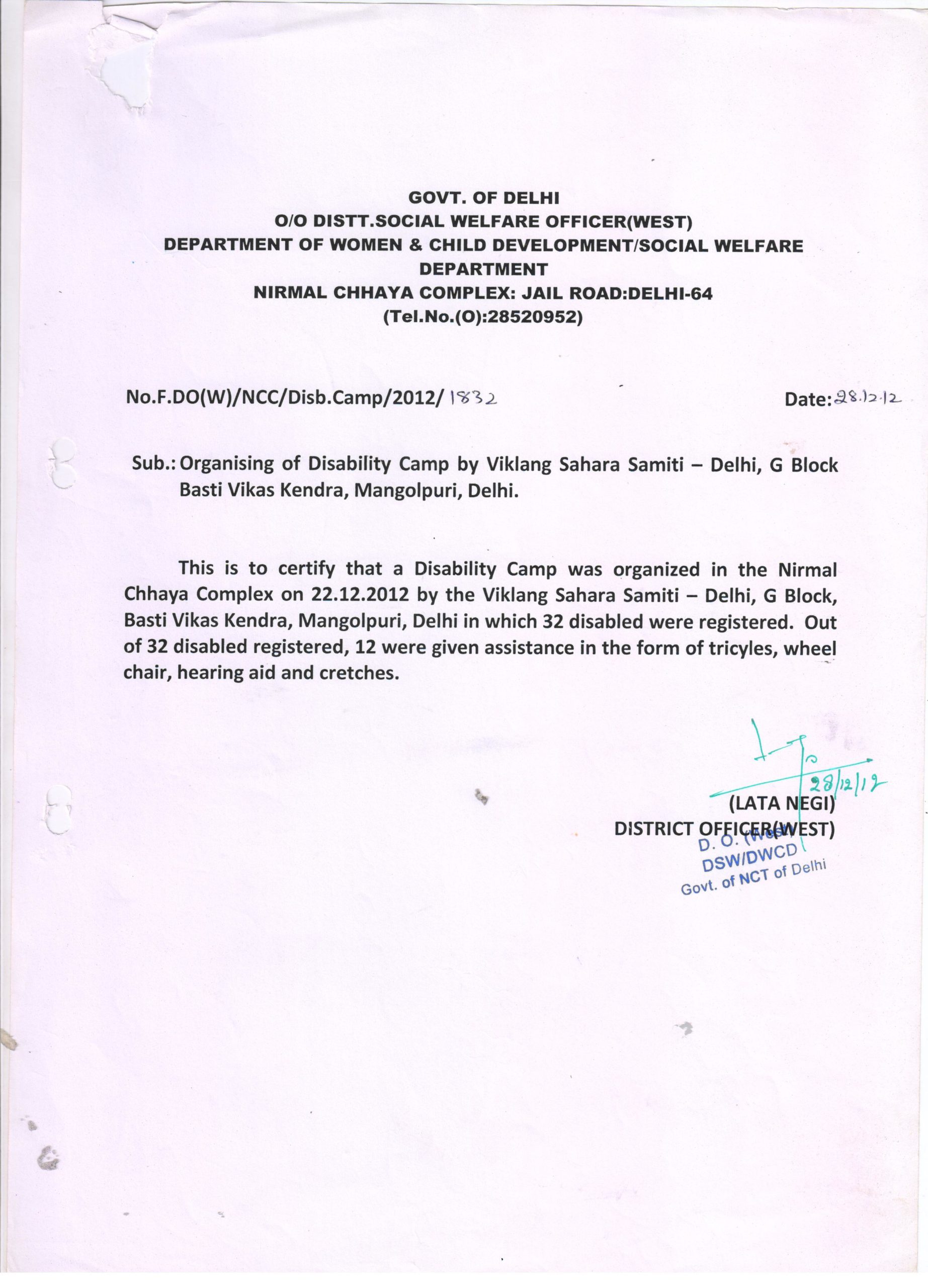 Referral and guidance camp at mangolpuri every Saturday 11 am to 1 pm