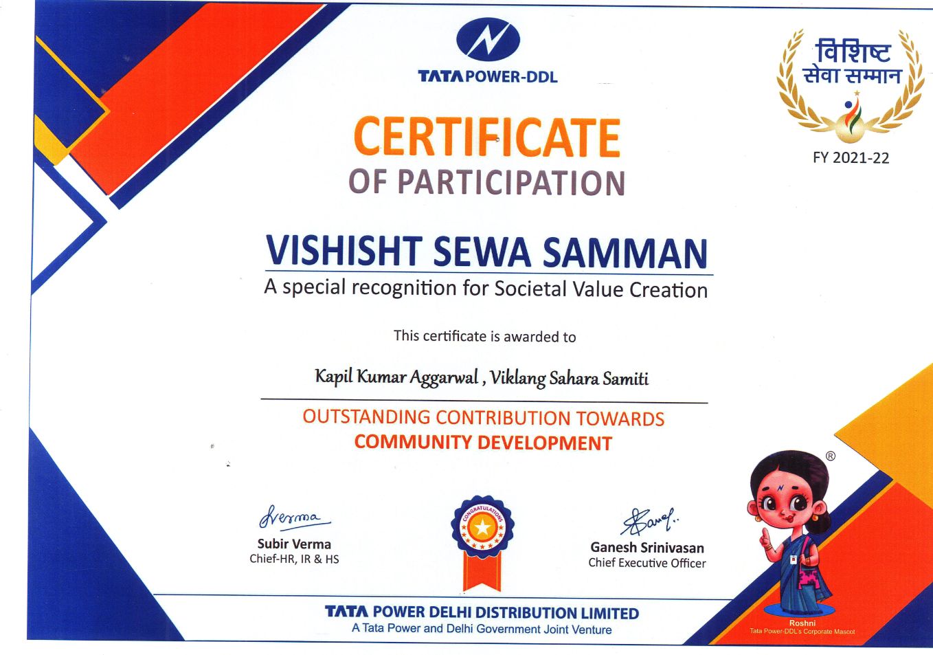 APPRECIATION & AWARDS TO VSSD